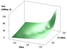 Рис. 4. ВВП (GDPeu) = f(X1, Х3)
