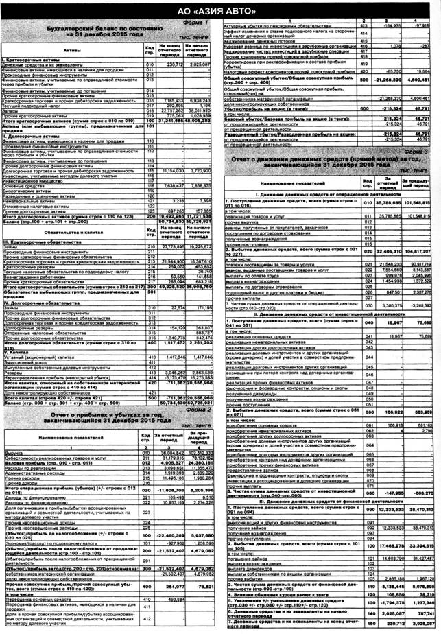 отчетность АО «Азия Авто» находиться в стабильном состоянии.