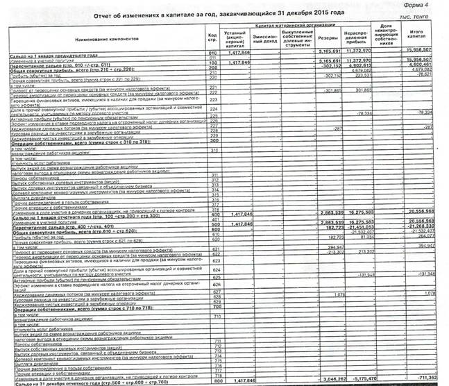 изменениях в капитале - отражает происшедшие за отчетный период изменения