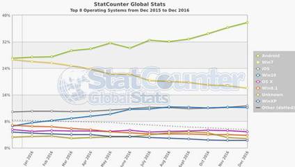 Global Stats [4] за останні роки ОС Windows поступово втрачала позиції лідера,