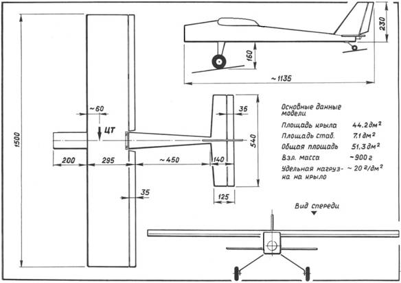 выполним ориентировочный расчет простой модели самолета (рис.4) и сопоставим