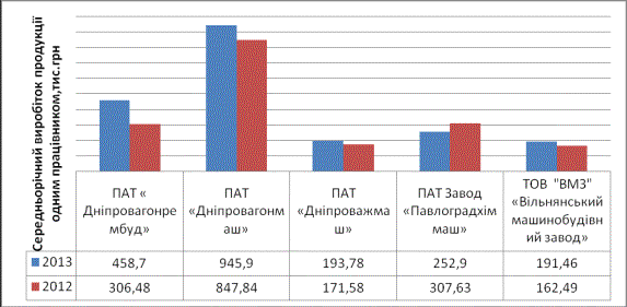 машинобудівний завод» на 4,48 люд.-год., а у 2013 році на 4,77 люд.-год. порівняно з 2011 роком. На ПАТ «Дніпроважмаш» також відбулося зростання у 2012 році на