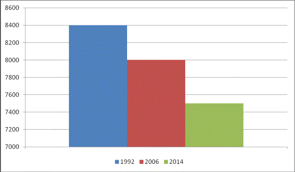 хотя, по сравнению с 1992 годом численность снижается, однако, все еще находится на высоком уровне.