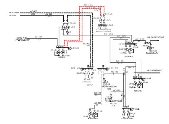 Рекомендуемая схема присоединения ВЭС Шелек (300 МВт)