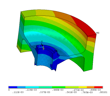 Рис.4. Значение суммарной деформации базового ротора