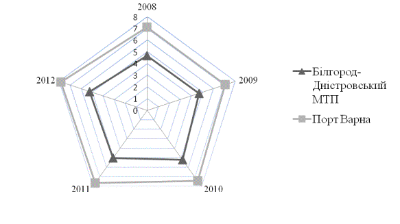 стійкість Білгород-Дністровського МТП та порту Варна за 2008-2012 роки