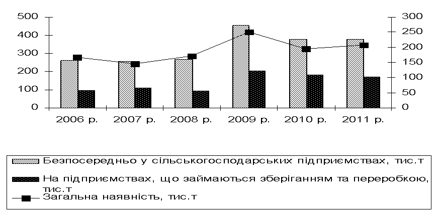 обсягом зберігання цих культур у 2011 році по Україні (рис. 2. 14)