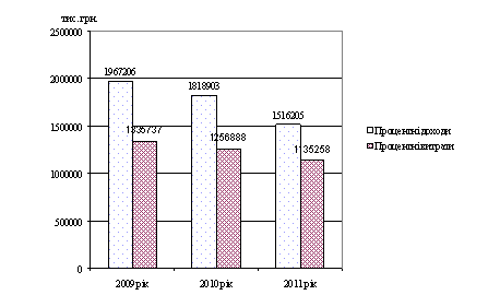 видно, що процентні доходи мають тенденцію до зниження протягом 2009-2011 рр.,