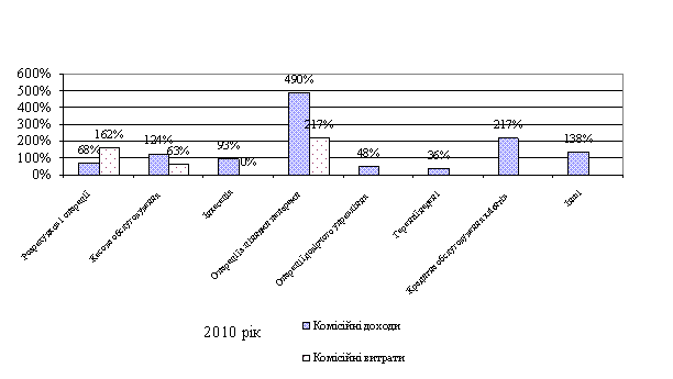 %). На рис. 3. представимо темпи росту комісійних доходів та витрат за 2010 рік