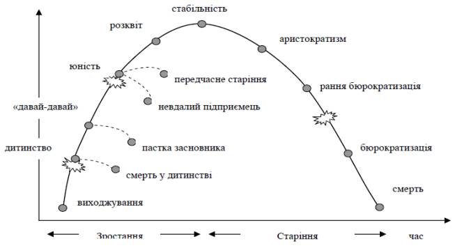 підприємство приречене на старіння і вмирання. Отже, теорія І.Адізеса