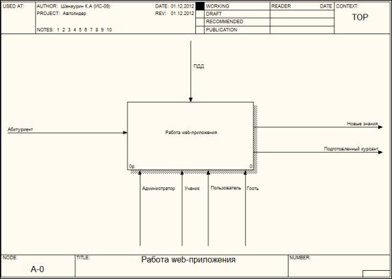 Контекстная диаграмма работы web-приложения представлена
