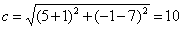 треугольника А (5; -1), В(-1; 7), С (1; 2). Найти длину его внутренней