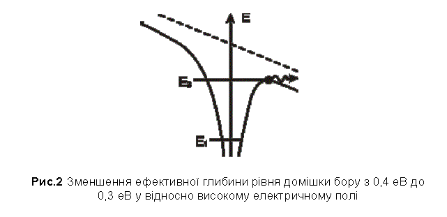 ефективної глибини рівня домішки бору з 0,4 еВ до 0,3 еВ у відносно високому