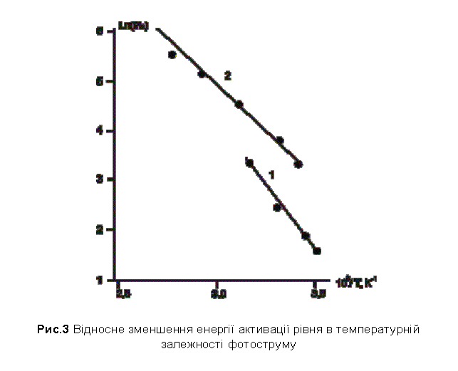 енергії активації рівня в температурній залежності фотоструму (Рис. 3).
