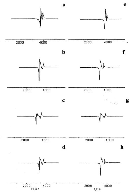 соседние спектры получены при направлениях внешнего магнитного поля,