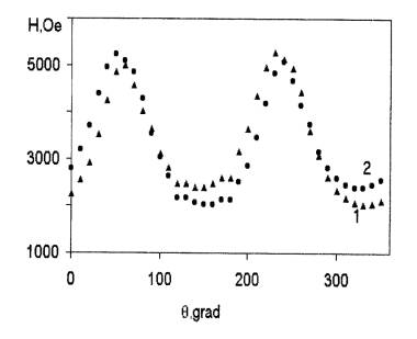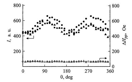 показаны азимутальные зависимости для двух основных пиков в спектре ФМР. Видно,