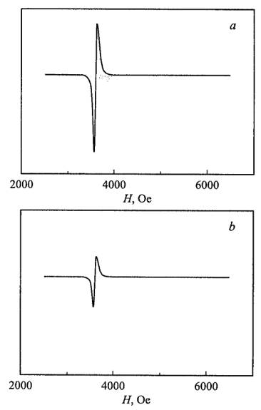 ширина линии ФМР ΔН для обоих пиков практически одинакова и не