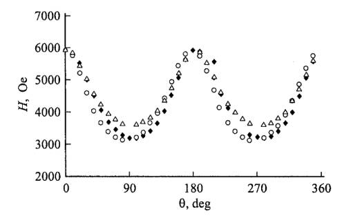 азимутального угла (рис. 5). Резонансное поле при перпендикулярном резонансе