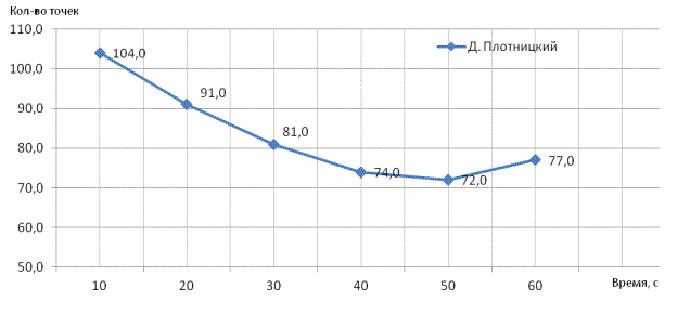 развития максимальной частоты движений Дмитрия Плотницкого, приведены на