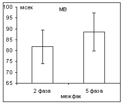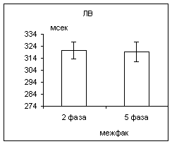 304,52±9,05 мсек, а в пятую – 298,21±10,84 мсек, что значимо ниже, чем у