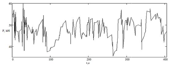 Рисунок 2 – Графік зміни осьової сили у часі, отриманий в