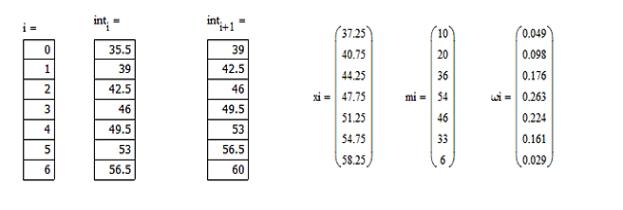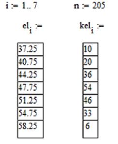 вибірку n=205 значень осьової сили на долото F на інтервали та визначимо їх