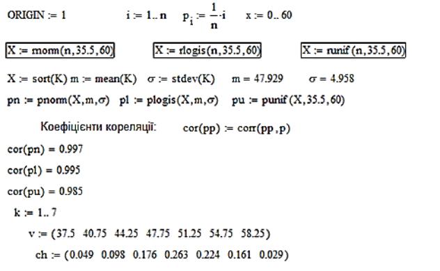 обробки експериментальних даних в програмі MathCad, наведено на рис 2.