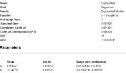 для осьової сили на долото F при використанні Curve Expert (Exponential)