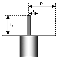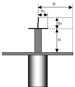 МИ представляет собой вертикальный монополь высотой dr1, который находится над круглым металлическим экраном с внутренним радиусом r и внешним радиусом R. Вертикальный монополь создан отрезком центральной жилы коаксиального кабеля (рисунок 1).