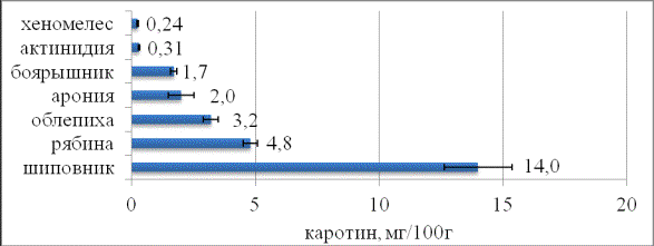 мг/100г). Невысокое накопление суммы каротиноидов отмечено у актинидии (до 0,38