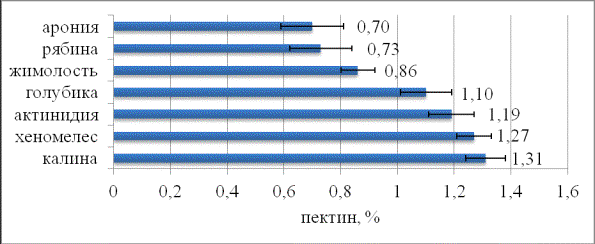 1,10%). Арония, рябина, жимолость накапливают менее 1,0% суммы пектиновых