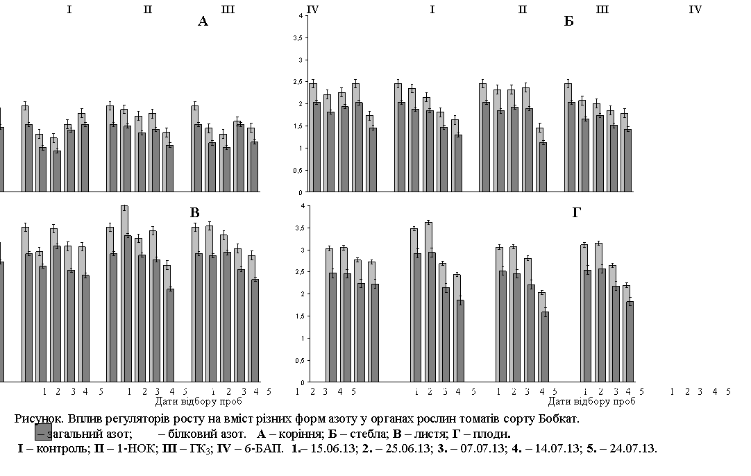 стимуляторів росту на динаміку накопичення різних форм азоту в рослин томатів