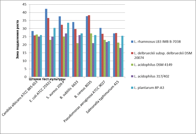 антагонистической активностью обладает L. acidophilus317/402(рис. 1).