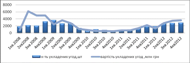 Як свідчать дані рисунку 3, найбільше лізингових угод у 2011 – 2012рр.