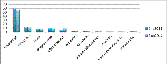 укладалося у транспортній галузі і сільському господарстві, а найменше у легкій