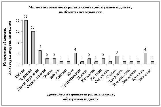 образующей подлесок, на объектах исследования