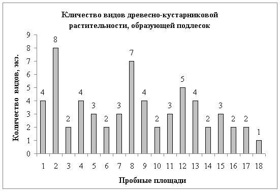 Рисунок 2. Количество видов древесно-кустарниковой растительности,
