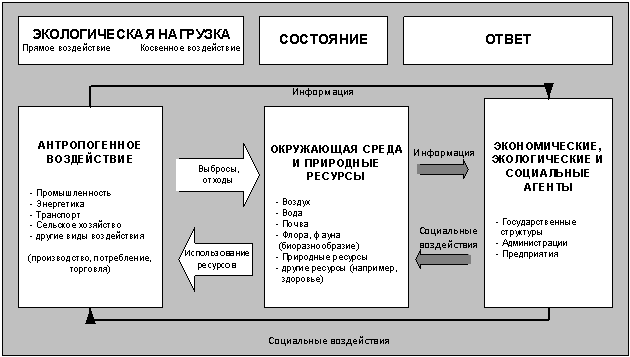 Рис.2. Структура природно-антропогенного комплекса в терминах модели Экологическая нагрузка-Состояние-Ответ по [2].