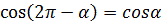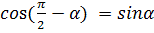 2) cos(90°-α) = sinα
