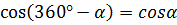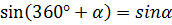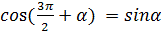 1) sin(90°+α) = cosα