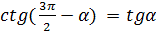 8) ctg(270°-α) = tgα