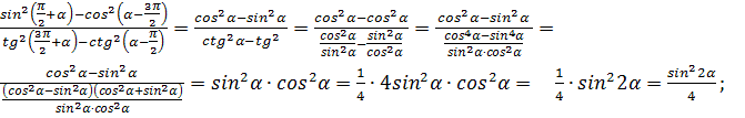 4) ctg(90°-α) = tgα