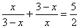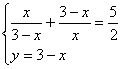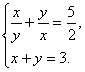 solve({x/y+y/x=5/2,x+y=3},{x,y});