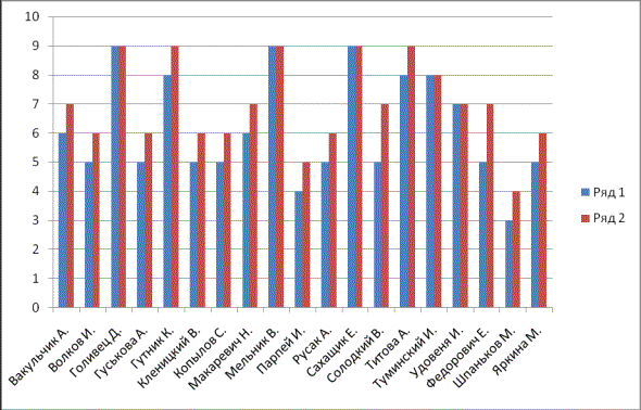 1. Сравнение отметок по первой самостоятельной работе с отметками по второй