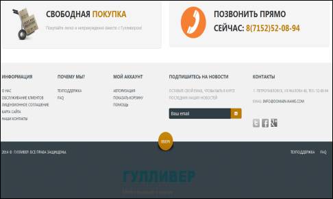 Рисунок 3 Контактная информация интернет магазина «Гулливер»