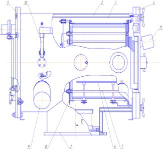 7-нагреватель; 8-блок экранов; 9-термопарный ввод; 10-манометрический датчик;