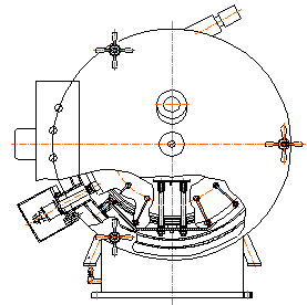 герметизируется четырьмя уплотняющими винтами с маховиками. В нижней части
