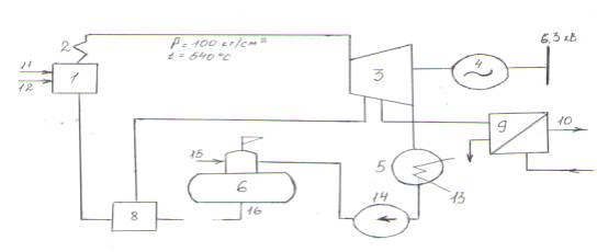 салқындатқыш; 6-Деаэратор; 7-Қоректік су