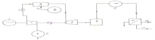 қыздырғыш; 3-Бу турбина; 4-Электр өндіргіш; 5-Бу
