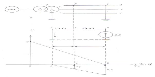 және тоқтың жерге сіңірілу нүктесі (К) мен